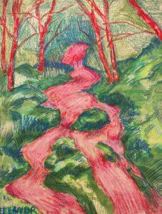 Edvard Munchi mõte „Ma ei maali seda, mida näen, vaid seda, mida tunnen“ loob tähendusliku raami ka nendele töödele. Joon muutub esmaseks väljendusvahendiks — ta voolab, murdub, kordub ja otsib oma rada nagu maastik ise. Värv ei allu reaalsusele, vaid toetab meeleolu ja liikumist.